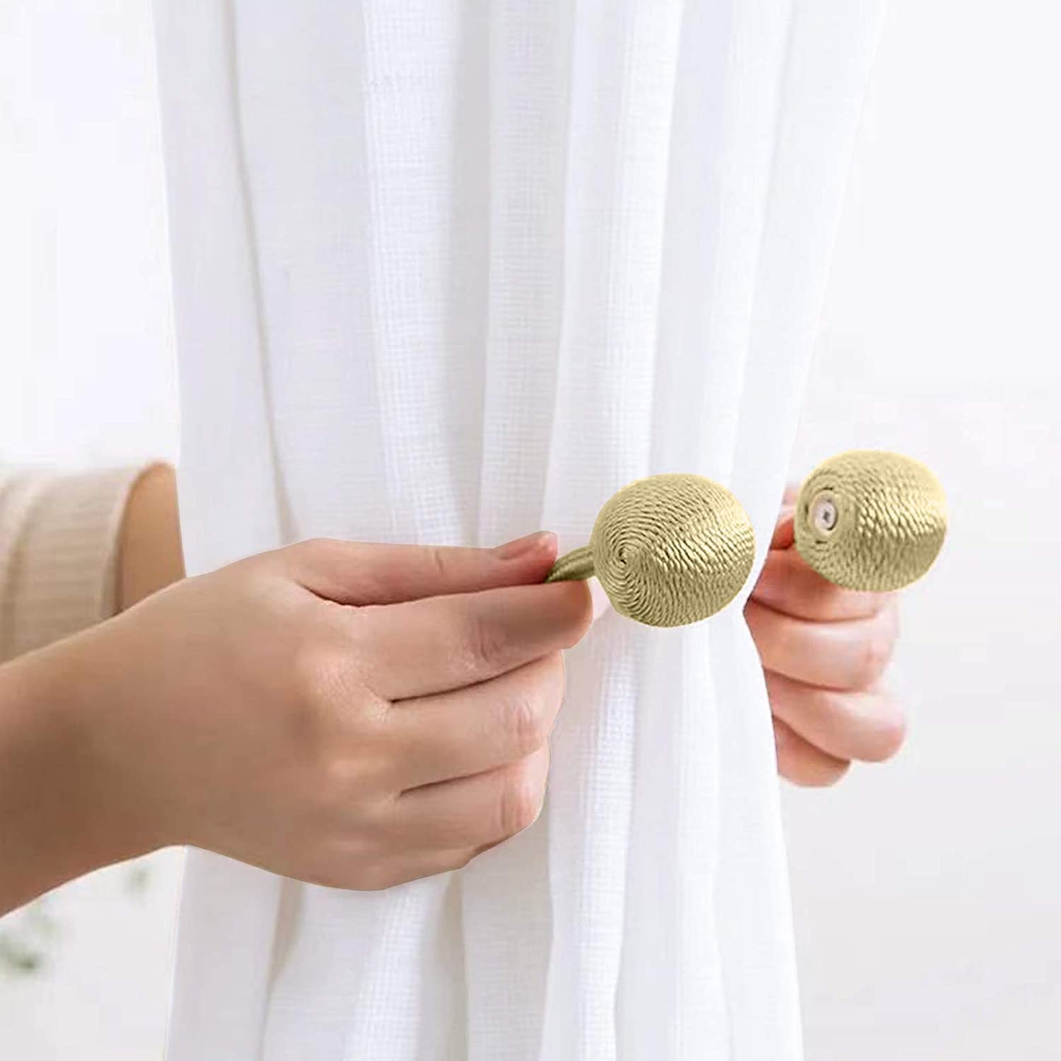 - These Magnetic Curtain Tiebacks come with binding weaving rope holders and stylish tieback buckles that make your curtains appear effortlessly chic and organized.
